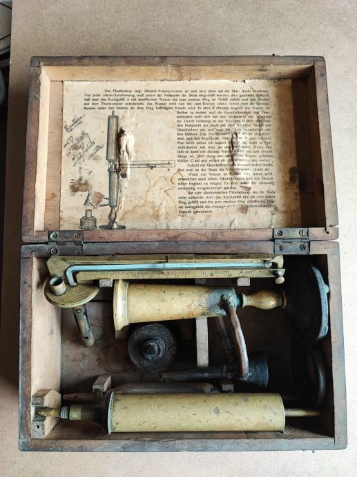 Kopletan set Ebulioskopa u drvenoj kutiji.