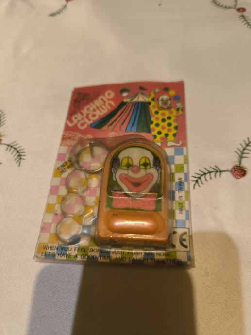 Miris djetinjstva stari privjesci,vintage privjesak,retro privjesak echo key koji radi na zvižduk,echo keyler na tipke i clown koji se smije originali koji datiraju iz 1987,1988 godine sva 3kom. Dolaze sa novim baterijama ispravni su i uredno rade. Mogućnost osobnog preuzimanja i probe prije kupnje ili se moze poslati poštom. Cijena za sva 3 komada 179€