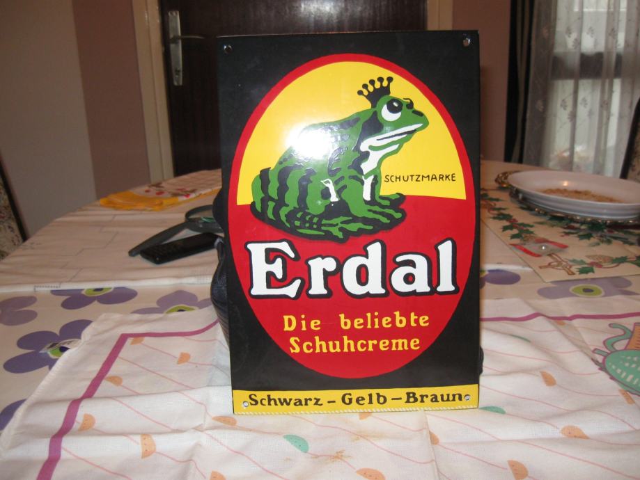Prodajem staru emajliranu tablu - reklama za cipele ERDAL, dimenzija table 20x30 cm, ima 4 rupice za pričvrščivanje za zid. Moguće osobno preuzimanje u Zagrebu i prema dogovoru dostava poštom po cijenovniku HP. Poštarinu plača kupac.