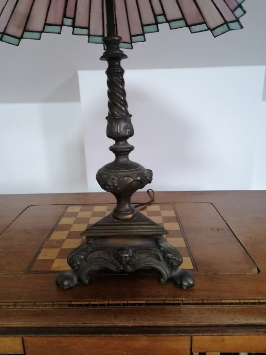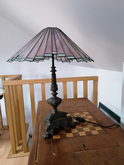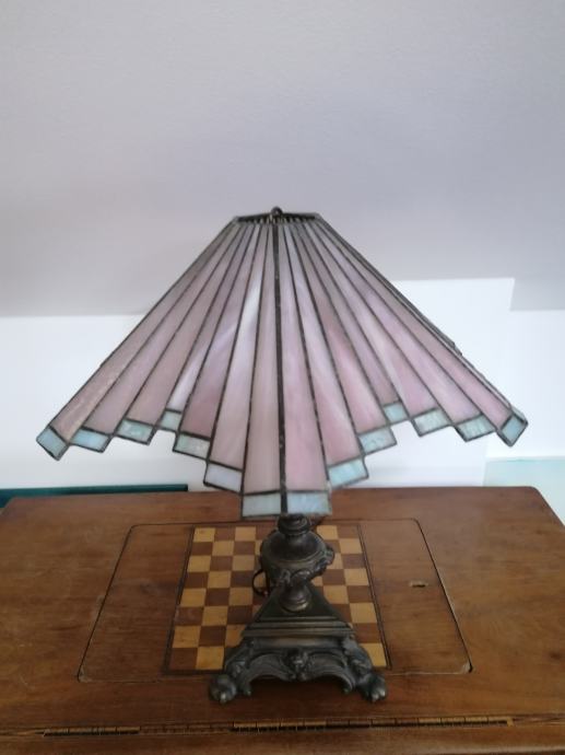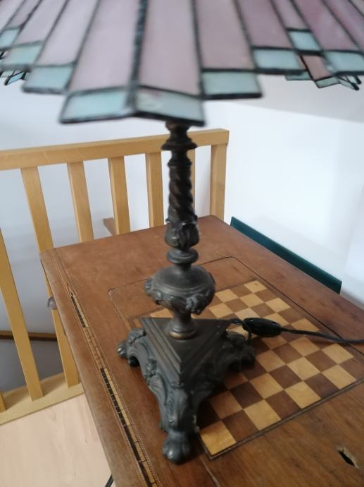 Iz moje privatne kolekcije. Predivna stolna svjetiljka sa tijelom od bronze i sjenilom u Tiffany stilu. U odličnom stanju, bez oštećenja. Potrebno ožičenje. Visina oko 50 cm. Kolekcionarski predmet koji ima uporabnu vrijednost. Zbog osjetljivosti moguće samo osobno preuzimanje u BJ, ZG, DA, KC, KŽ, ČA. Dobijete predmet sa slika.
