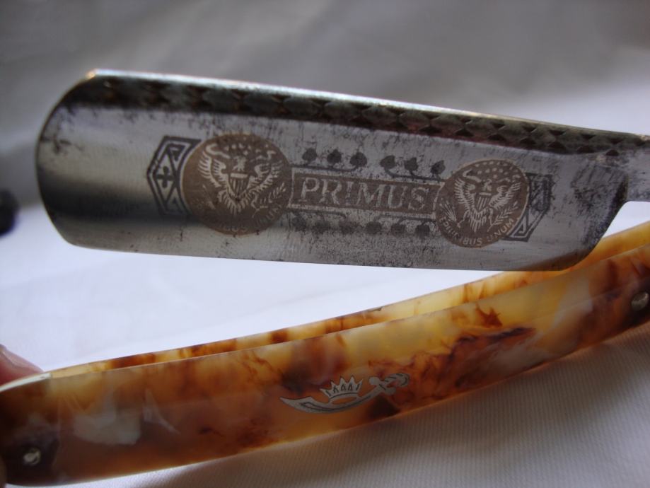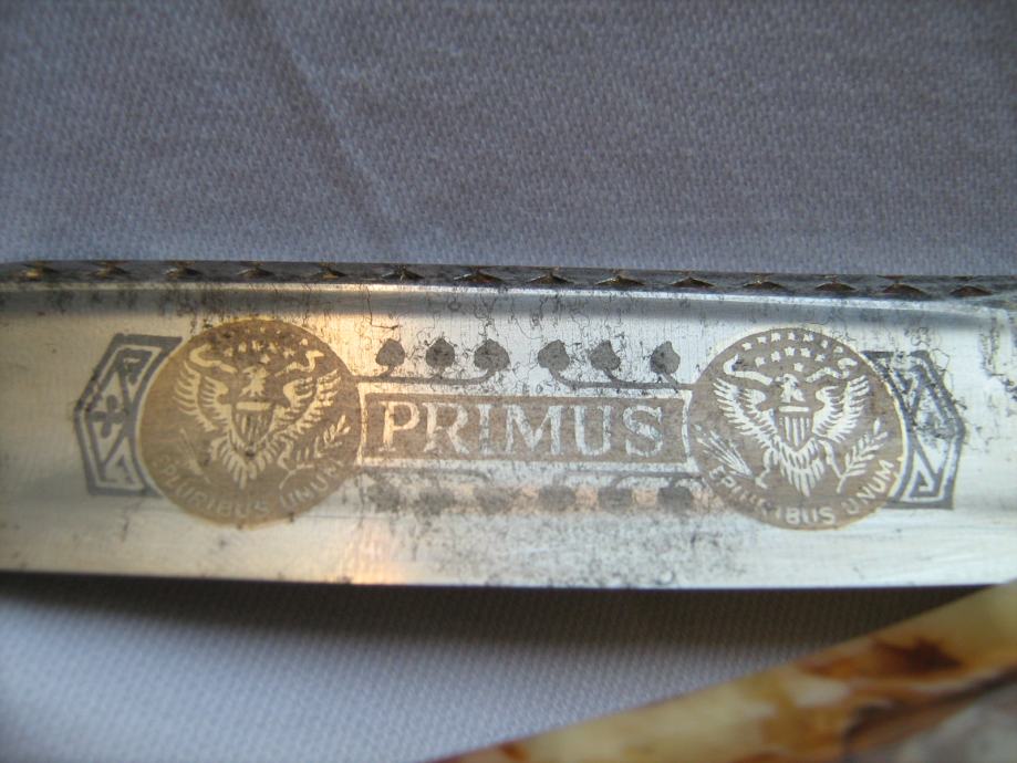 Kolekcionarski primjerak -ručica bakelit prošarana ,oštica pozlata sa natpisom Primus stilski izrađena sa dva znaka sa strane pozlata je izlizana.al se još uvik nazire na pojedinim mjestima