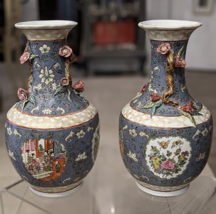 Family Rose par kineskih porculanskih vaza iz 19. stoljeća.