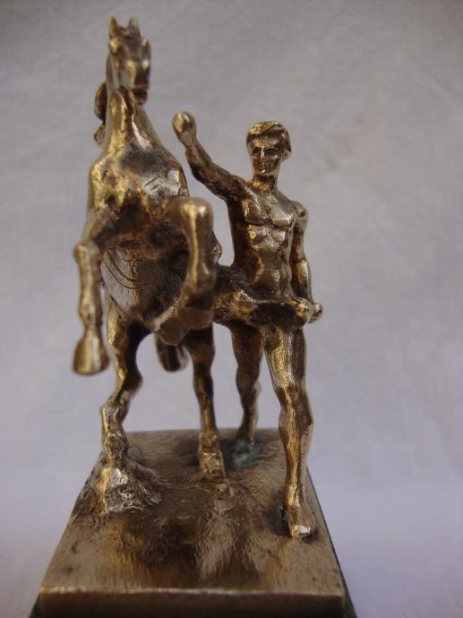 konj i konjanik od bronze na sjajnom crnom mramoru iz doba secesije 1900 godine