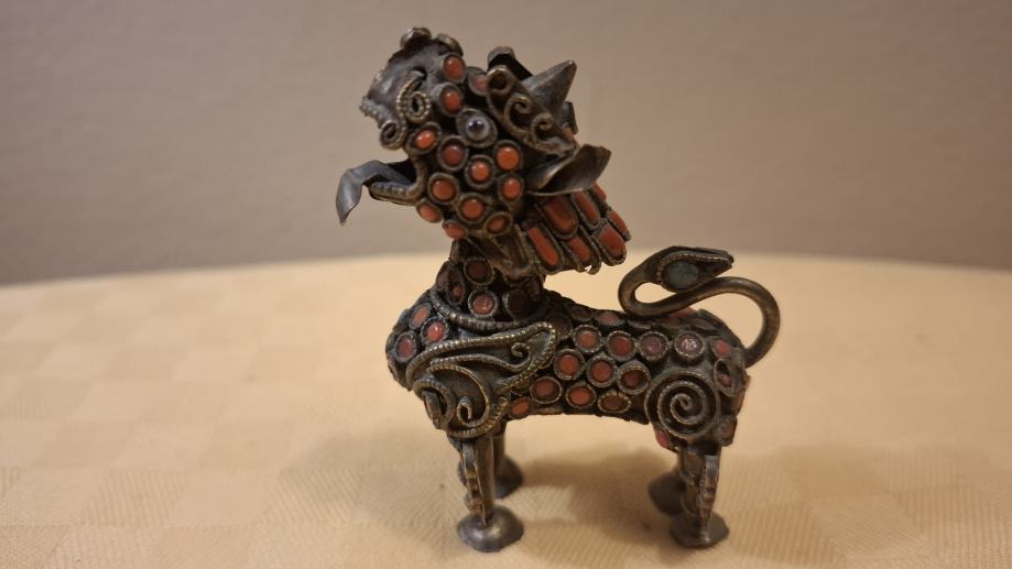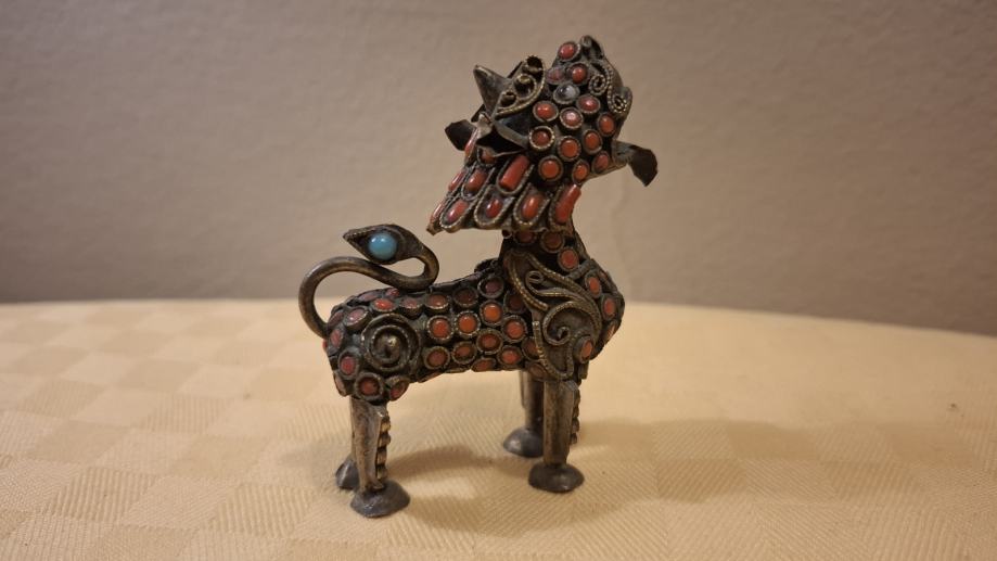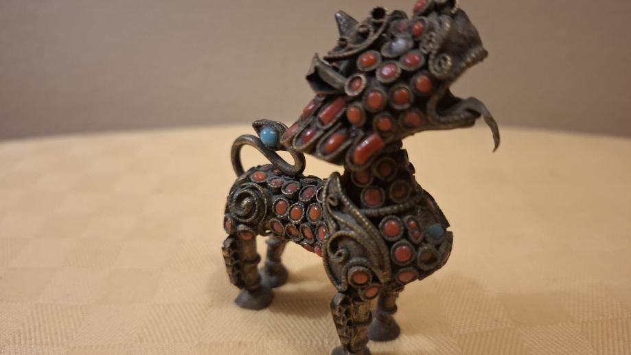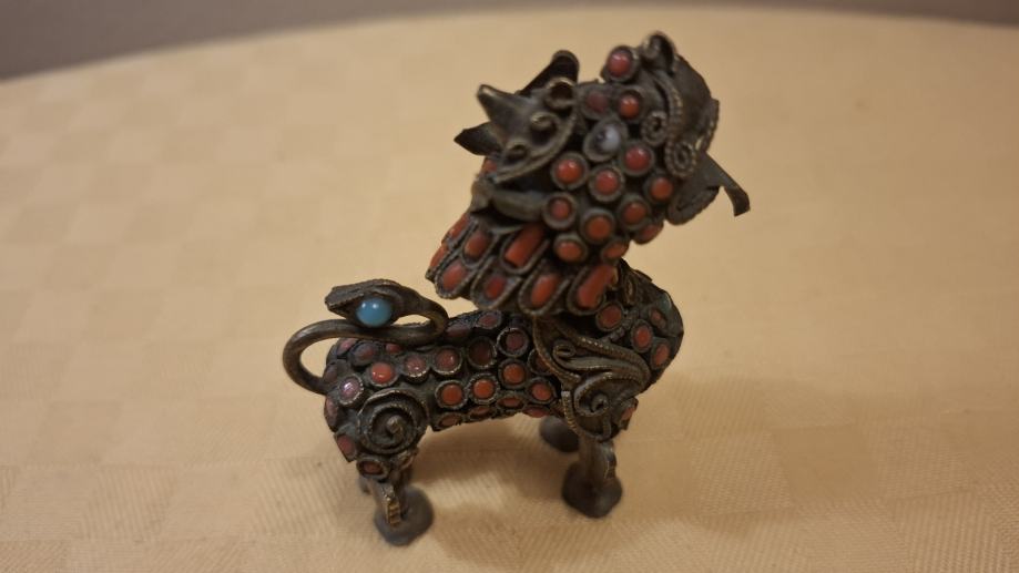 FOO DOG mjedena filigranska figurica sa koraljima i tirkizom