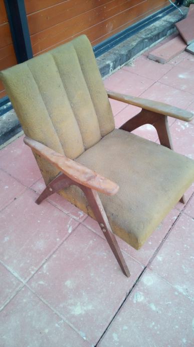 Fotelja, potrebno restaurirati. Drvena konstrukcija dobro stanje, platno cijelo, bez oštećenja. Cijena 50e. Novi Zagreb (Horvati ili po dogovoru Sloboština). Info na br 0912111166