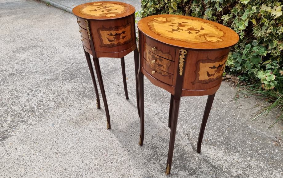 Lijepi par francuskih noćnih ormarića u odličnom stanju, furnir od orahovine.