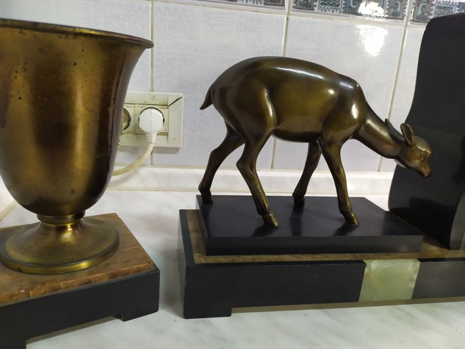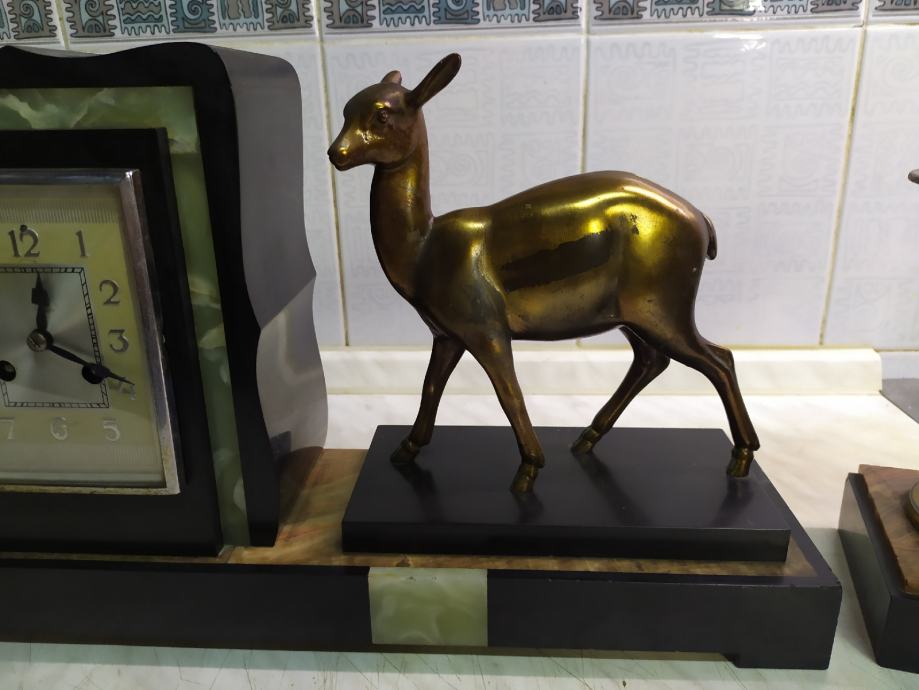Francuski mramorni sat garnitura sa figurama i vazama..cca 1930god