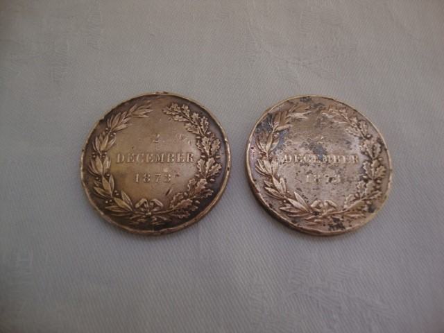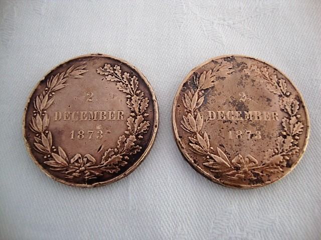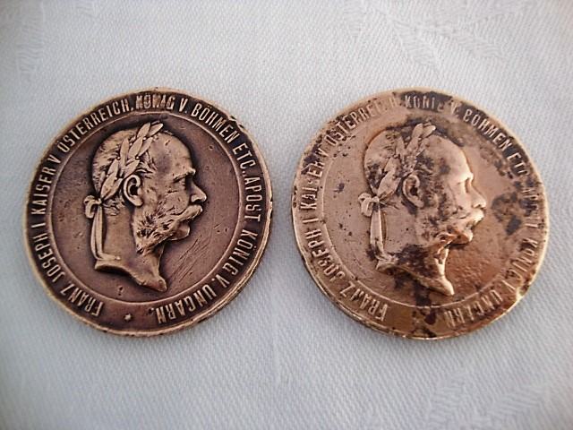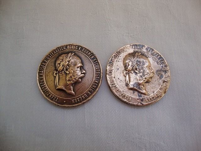 Dvije stare medalje promjer 36 mm ,debljina 3 mm tezina 21,7 grama prva s lijeva druga 25 grama - stara patina iz vremena