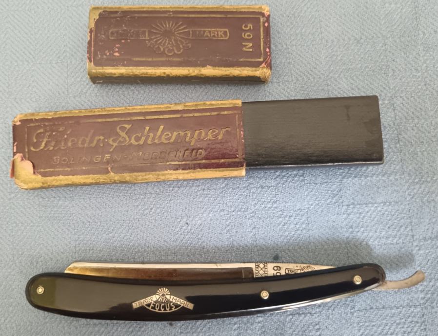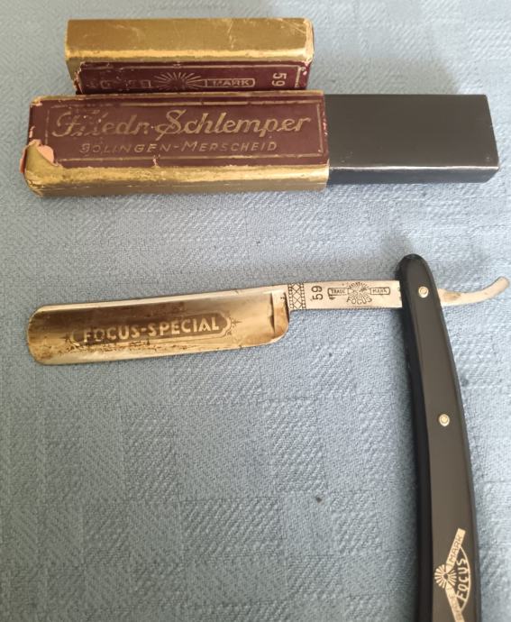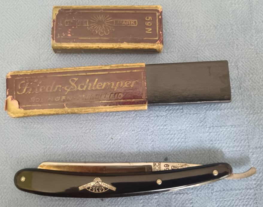 * britva za brijanje marke Friedrich Schlemper iz serije "Focus", proizvedena u Solingenu, Njemačka.