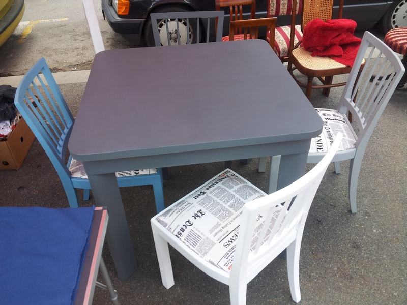 Art deco garnitura višebojna akrilna staro oko 80/90god. stolice tapecirane na klasičan način.Dimenzija stola 100x1oocm a kada se razvuče dužina je 145cm