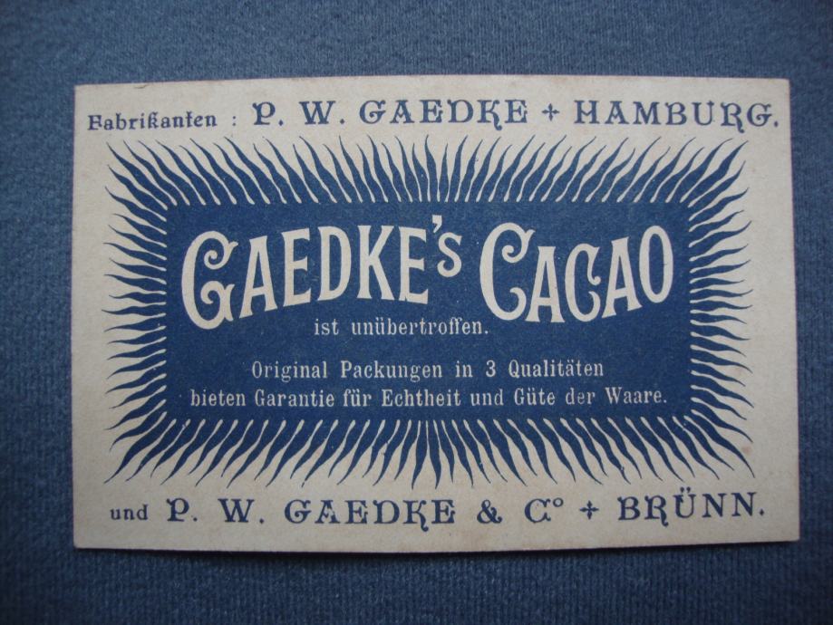 GEADKE'S CACAO und P.w.Gaedke & Co + Brunn - Cacao HAMBURG 1890.