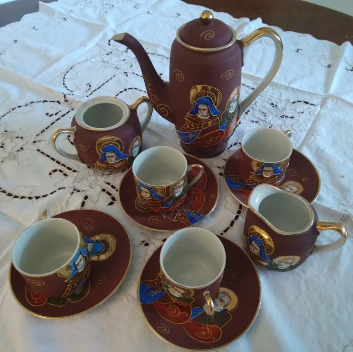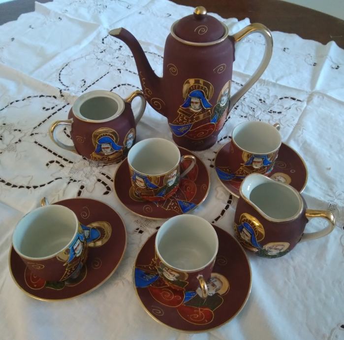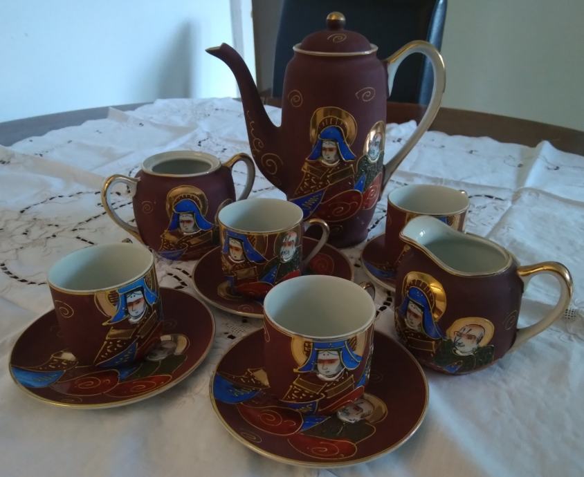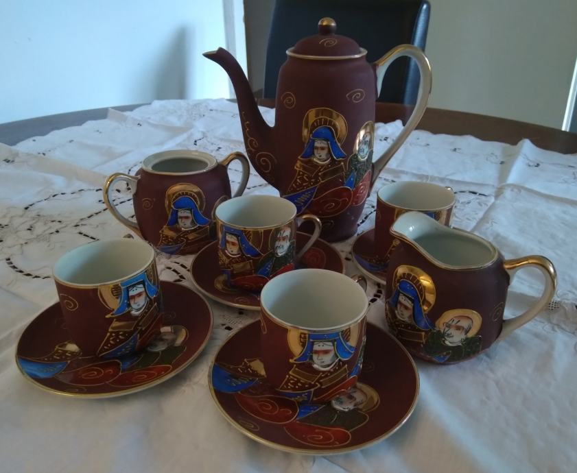 za četiri osobe sa tradicionalnim geisha motivom na dnu šalica / prozirni porculan /