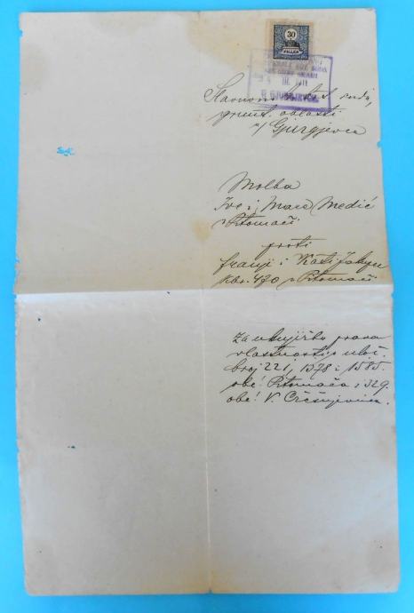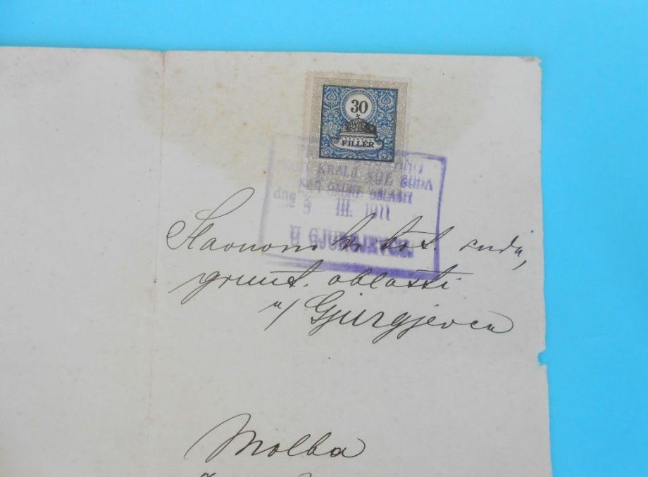 GJURGJEVAC (ĐURĐEVAC) stari dokument sa taksenom markom iz 1911. god.