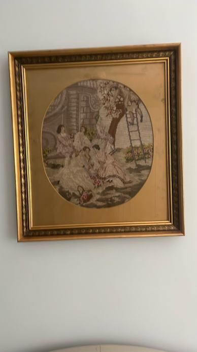 Prodajem povoljno prekrasni stari goblen iz oko 1920 g. Okvir je iz 1970 g. Goblen potječe iz bivše Čechoslovačke, u pozadini se vidi Orloj u Pragu. Sačuvan u izvrsnom stanju. Dimenzije: okvir:57x63 cm a sami goblen: 45x39 cm.