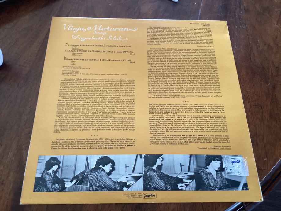 Gramofonska ploča Višnje Mažuran Čembalo pod nazivom: Zagrebački solisti.