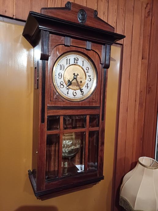 " Gustav Becker " poznata marka , lijep stari zidni sat , ispravan i točan , plemenito drvo boje mahagoni ,