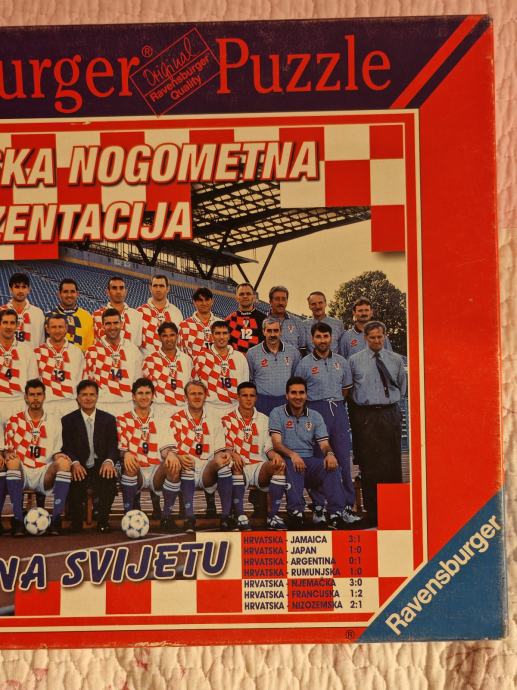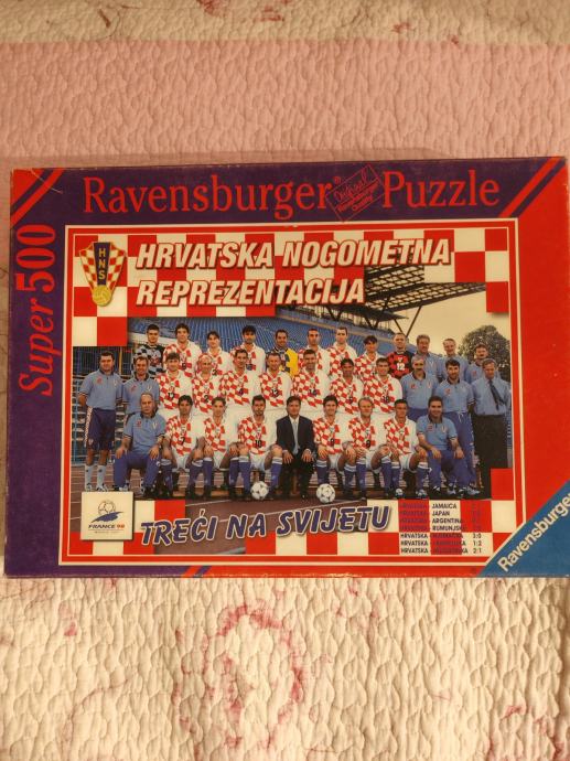 Ravensburger 500 puzzle.U originalnom i kompletnom stanju.Unikat za kolekcionare i ljubitelje Hrvatske Nogometne Reprezentacije.