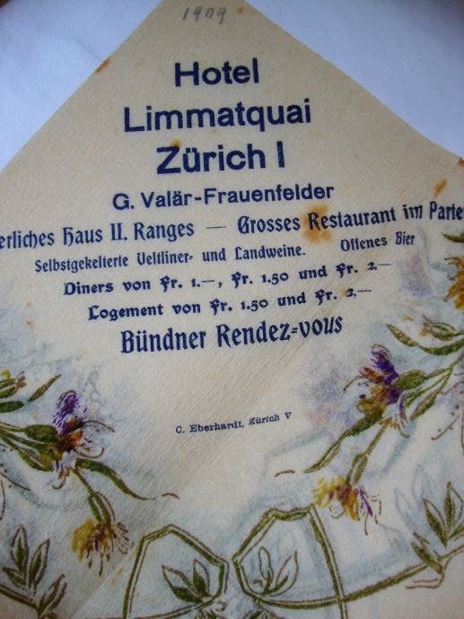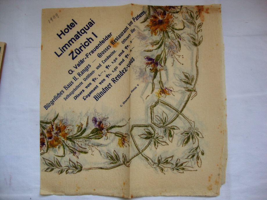 HOTEL LIMMATQUAI ZURICH I , Serviete Antque from 1909. -Salvatore