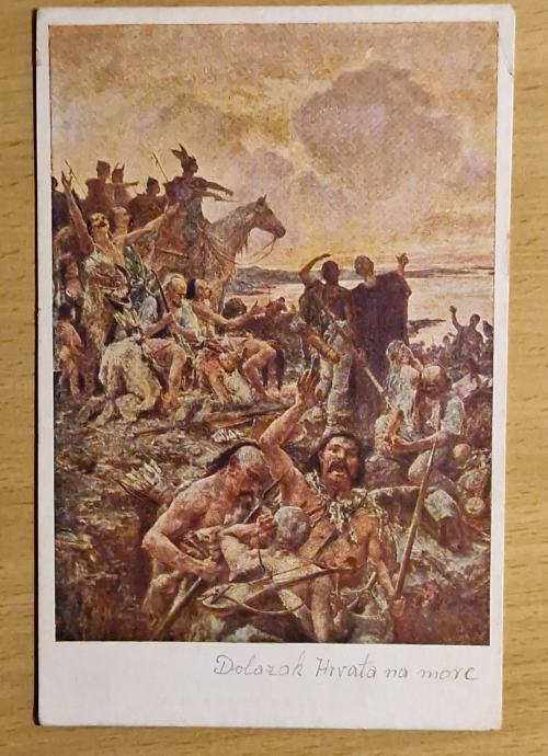 Hrvatska domoljubna stara razglednica Dolazak Hrvata na more cca 1920