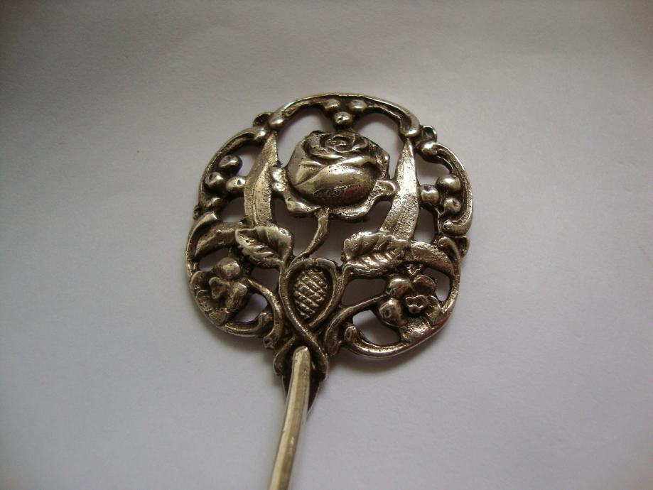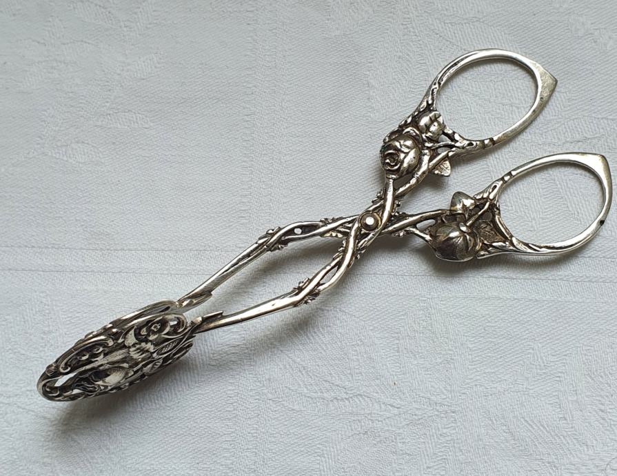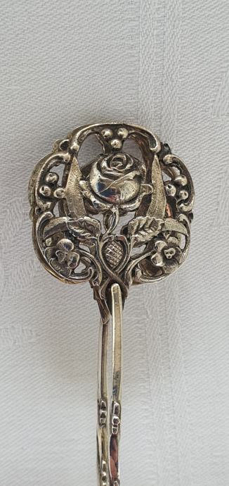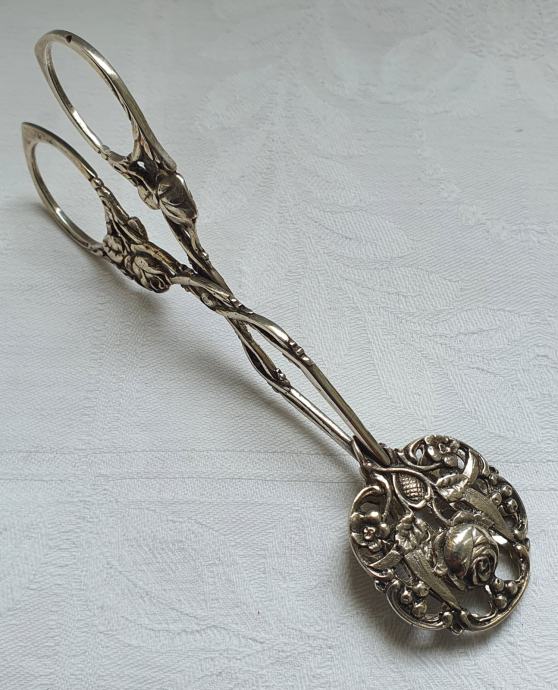 Predivana starinska njemačka hvataljka za kolace izrađena od srebra ručno kovano motiv ruža
