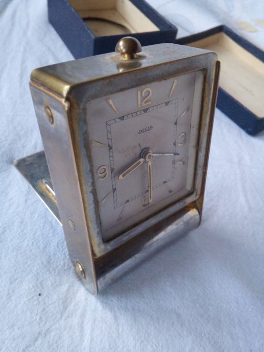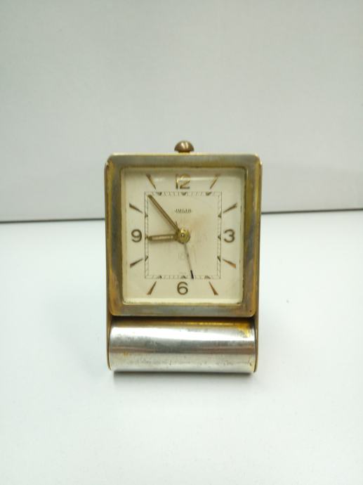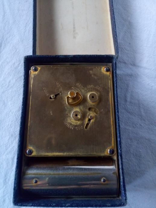 Originalni putni sat iz vremena u metalnom kućištu i u originalnoj kutijici.
