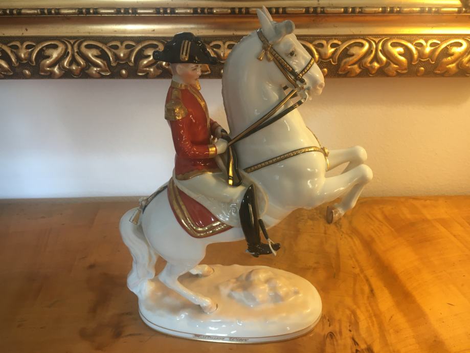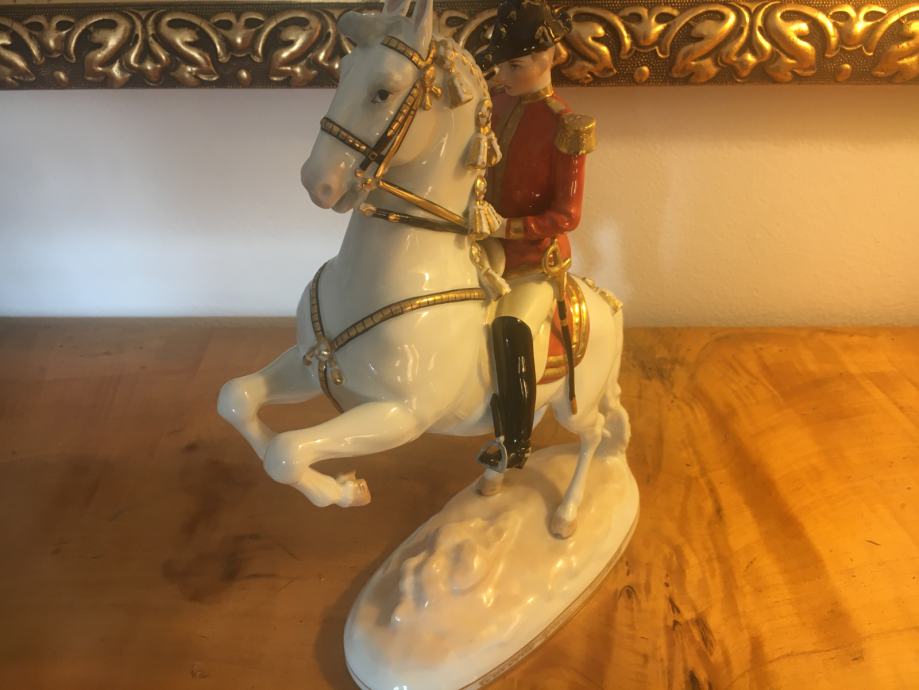 Vrhunska očuvana porculanska figura jahača na konju, manufakture Augarten iz Beča. Visina ca 25 cm.
