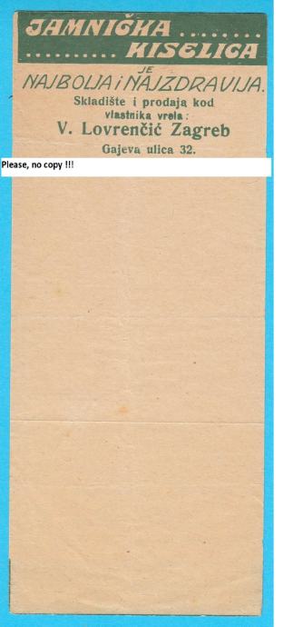 JAMNIČKA KISELICA - Vlastnik vrela V. Lovrenčić Zagreb stara reklama