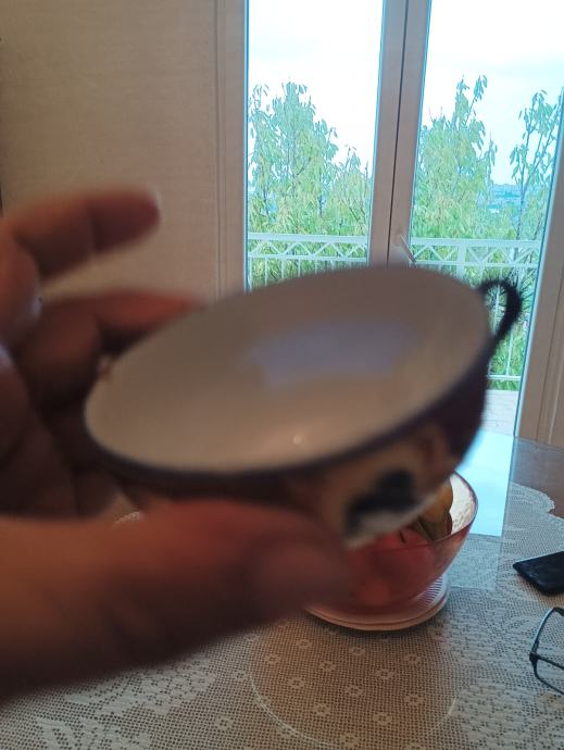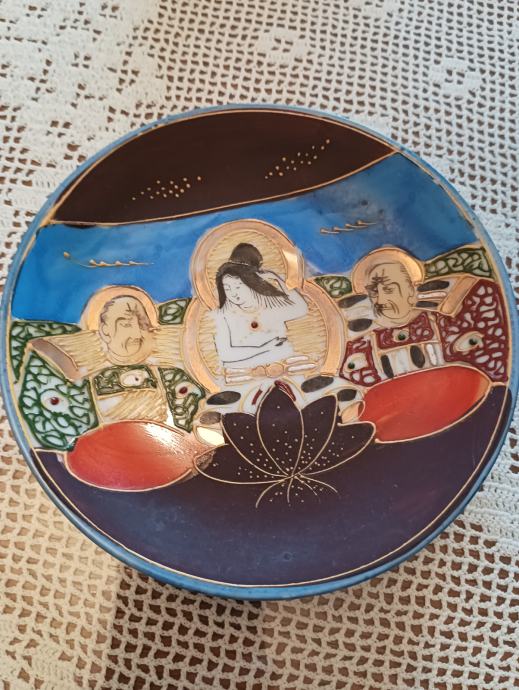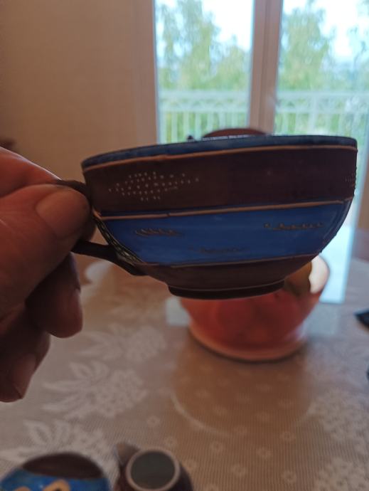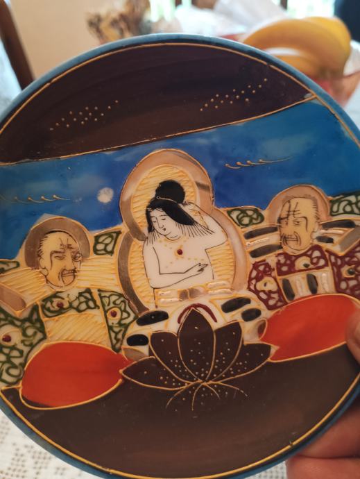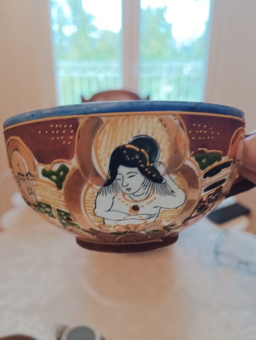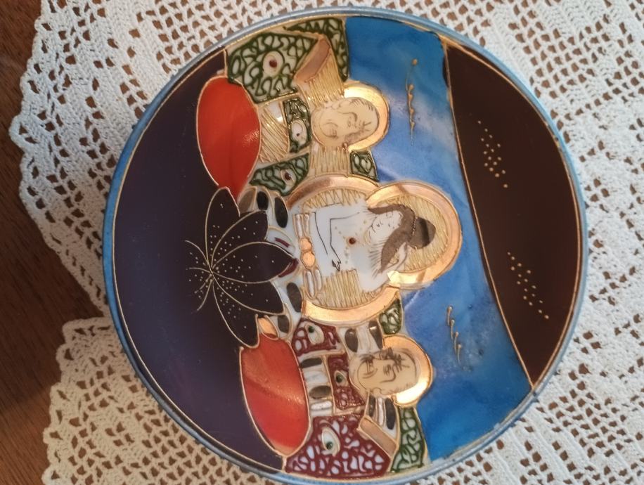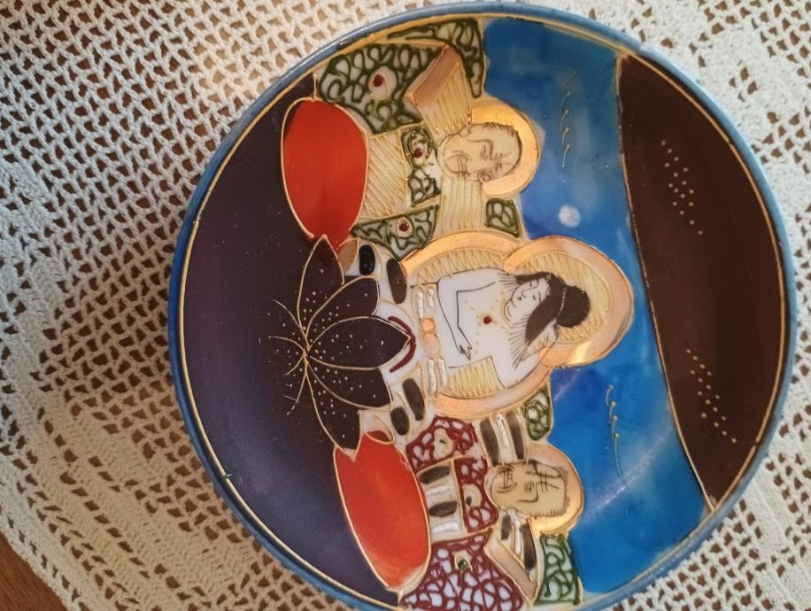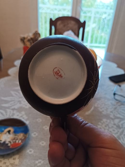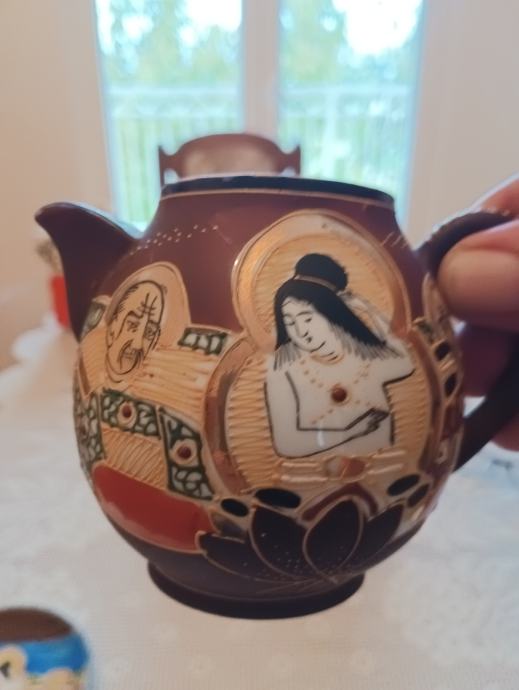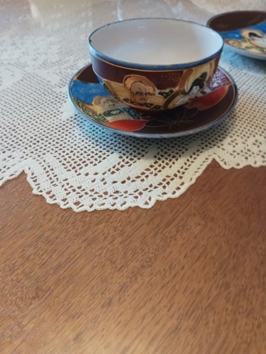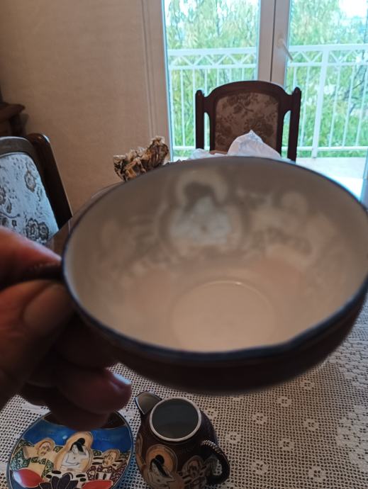 Tanki japanski porculan ručno bojan ( stari komad) pogledajte slike .( 2 pijetića ,šolja i posuda za čaj ili mlijeko ???