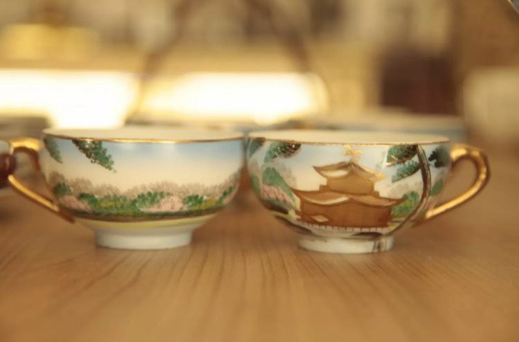 - 6 tankih šalica sa reljefom gejše u dnu svake šalice koja se vrlo jasno vidi na svijetlu