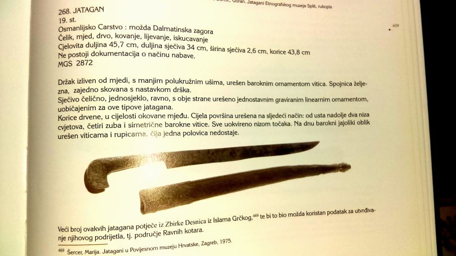 Jatagan, original, dužine 55 cm sa koricama,40 cm van korica. Porijeklo najvjerojatnije Dalmatinska Zagora,19. st. ( U prilogu postavljeni opisi i slike sličnog Jatagana iz knjige g.Gorana Borčića "Zbirka oružja muzeja grada Splita).Cijena- dogovor!