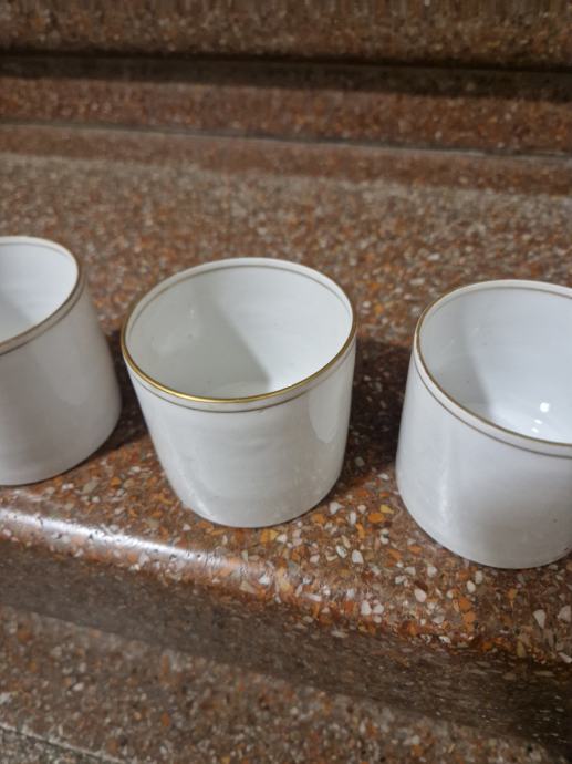 Kako tko već voli i koristi ih, visina 6 cm, dno je oko 6.2 cm ( vanjske dimenzije ako ih netko želi staviti u držač gdje su nekad bile)...sve su u perfektnom stanju a čak je i rubna pozlata očuvana. Idealno za nadopunu ako su se nekome razbile tijekom vremena ili za svakodnevnu upotrebu. Cijena po komadu je 25 eur...imam više komada...poruke na whatsapp