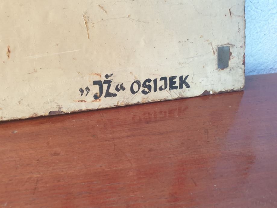 JUGOSLOVENSKE ŽELJEZNICE DVOSTRANA TABLA SA VAGONA 67X34 CM