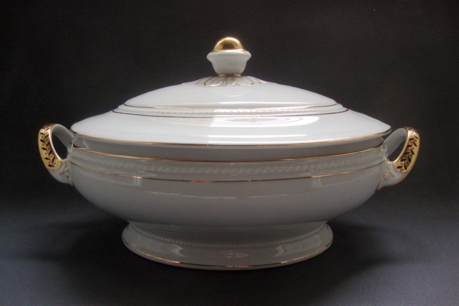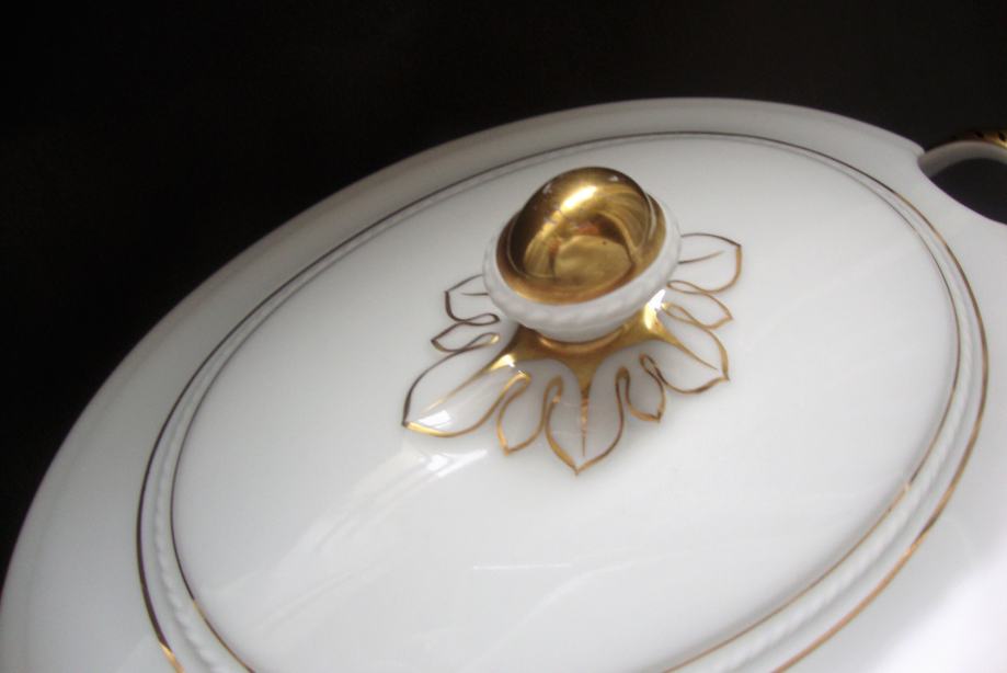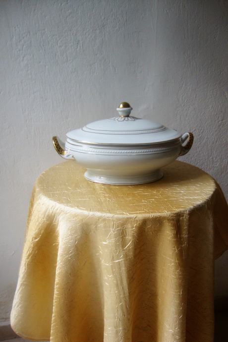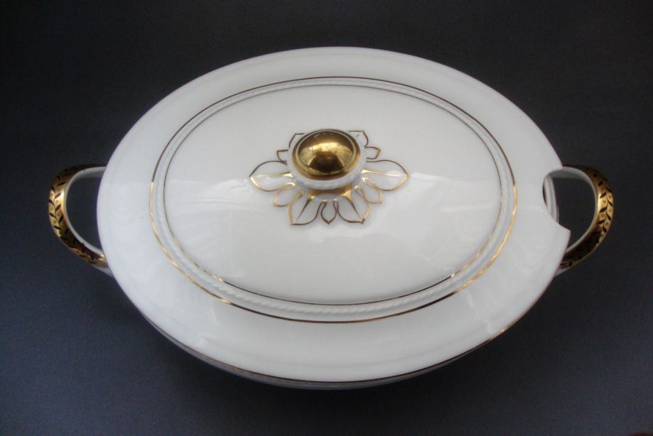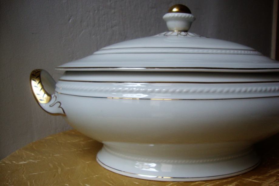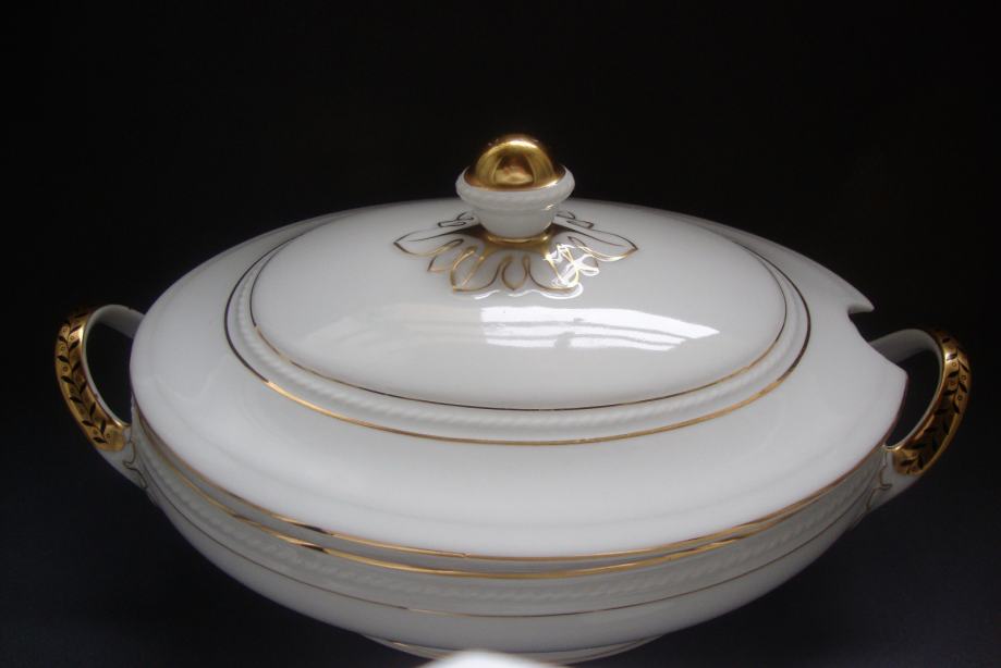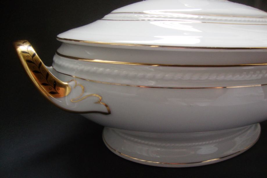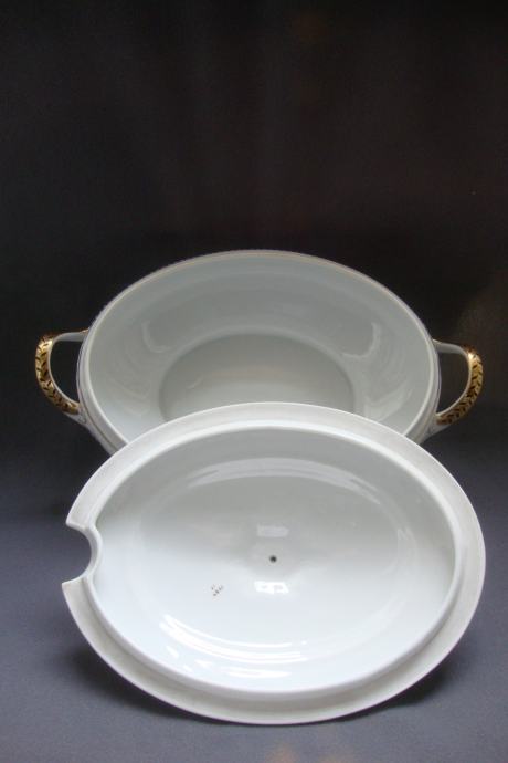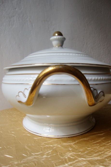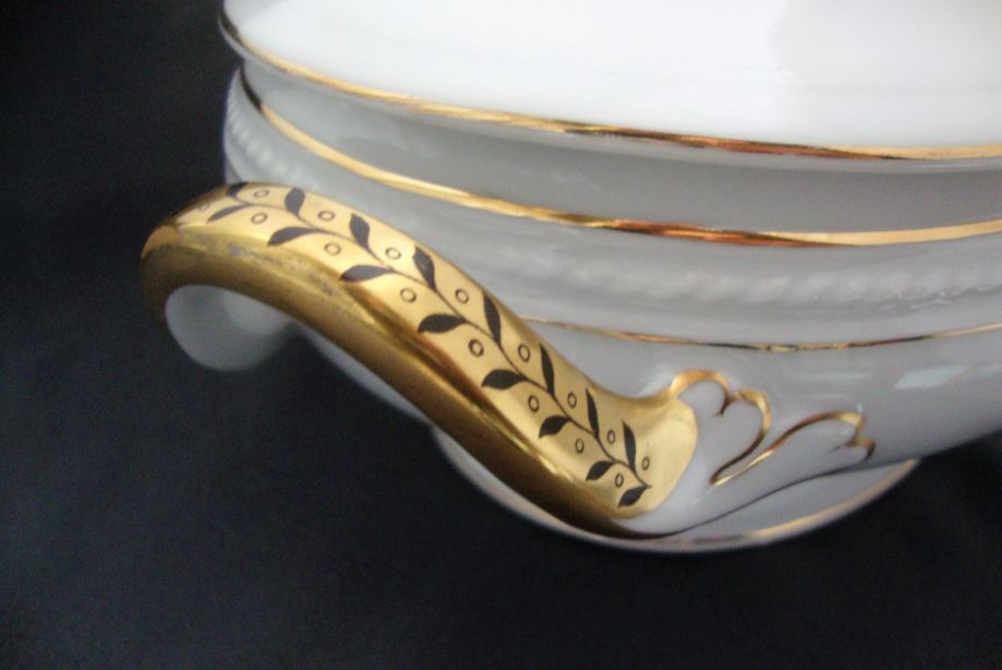 Kresan starinski jušnik preko 100 godina ovalnog oblika reljefno ukrašen ručno oslikana pozlata i ručke