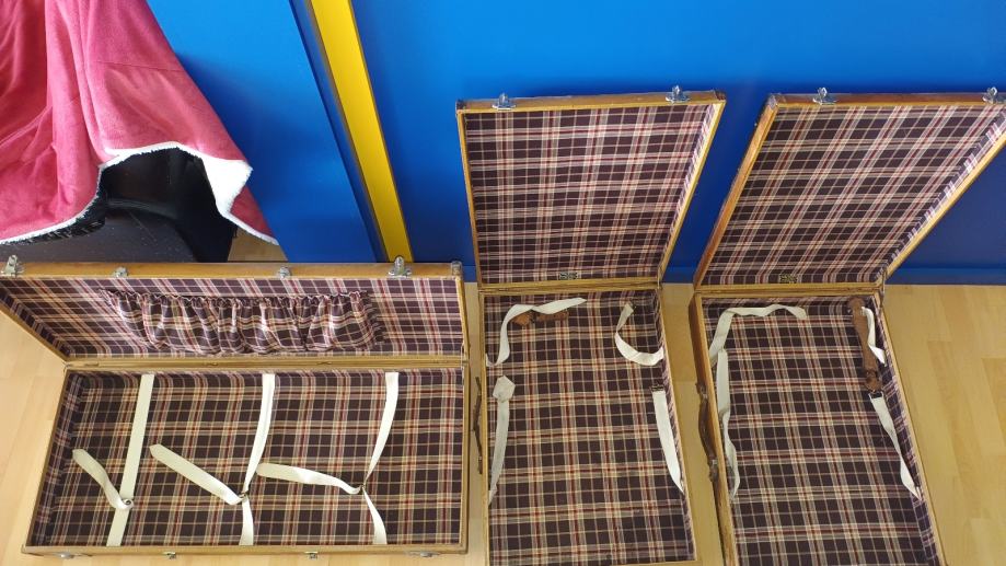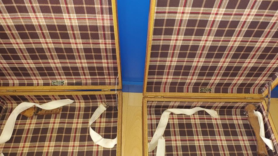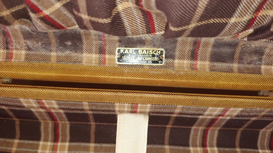 Ručno rađeni koferi od svinjske kože iz 1950 koji su rađeni za Mercedes. Iznimno rijetki primjerci u svijetu. Koferi su iz unutrašnjosti kao novi a iz vana im treba restauracija. Neke drške su pale kao što se vidi ali su sve na broju i spremljene su u kofere .