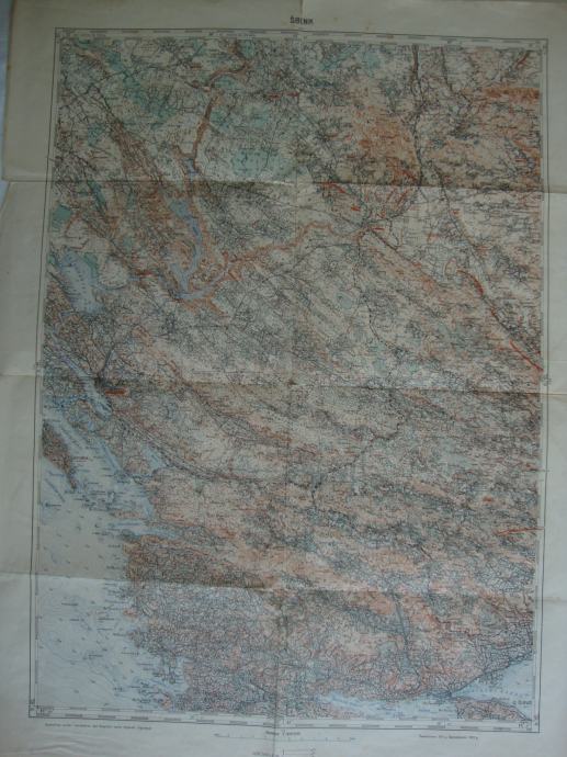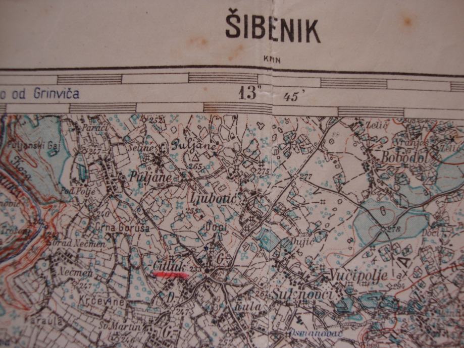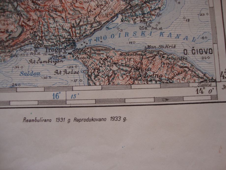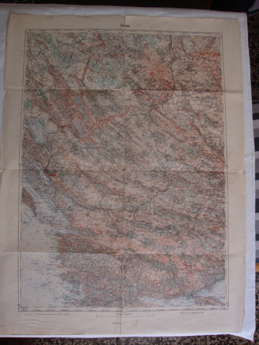 DRNIŠ I ŠIBENIK - TROGIR I KISTANJE stara karta iz doba Kraljevine Jugoslavije 1933. godine