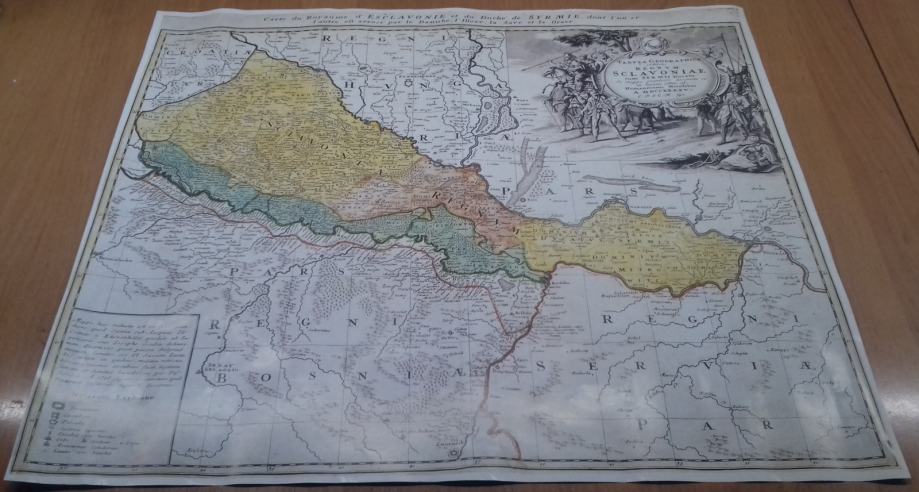 Opća karta Slavonije i Srijema nastala u razdoblju uspostave Granice, Komorske uprave i uvođenja urbara, neposredno prije obnove županijskog ustroja i utjelovljenja Slavonije i Srijema u sastav Hrvatske (1745.).