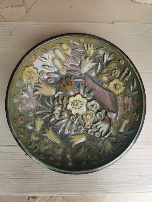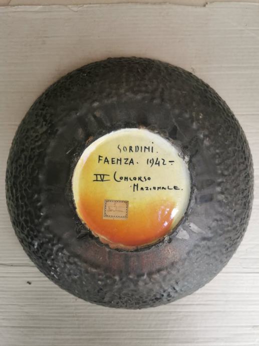 keramička dekorativna zdjela Sordini Faenza. IV Concorso Nazional, Italija 1942.god. promjer 45 cm, dubina 9 cm