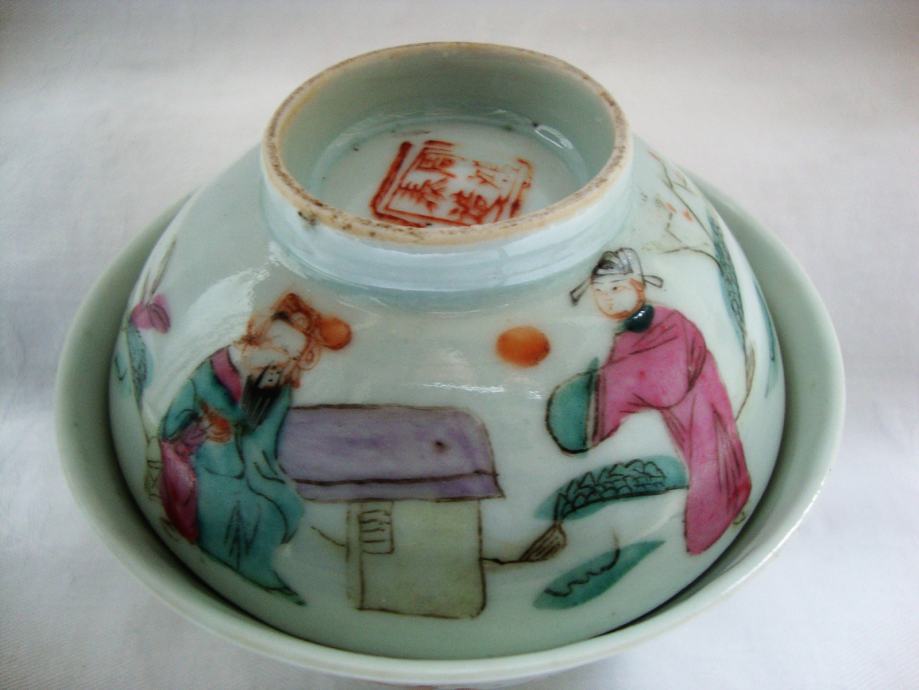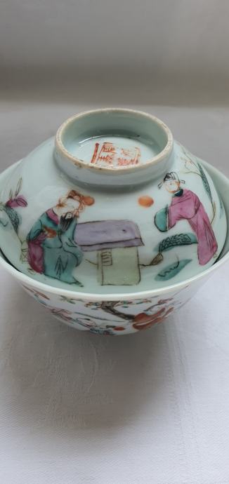 Predivna stara porculanska posuda sa poklopcem ručno za serviranje riže ,oslikani tanki fini porculan ukrašeno pozlatom