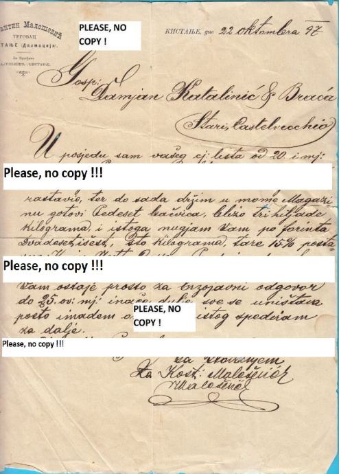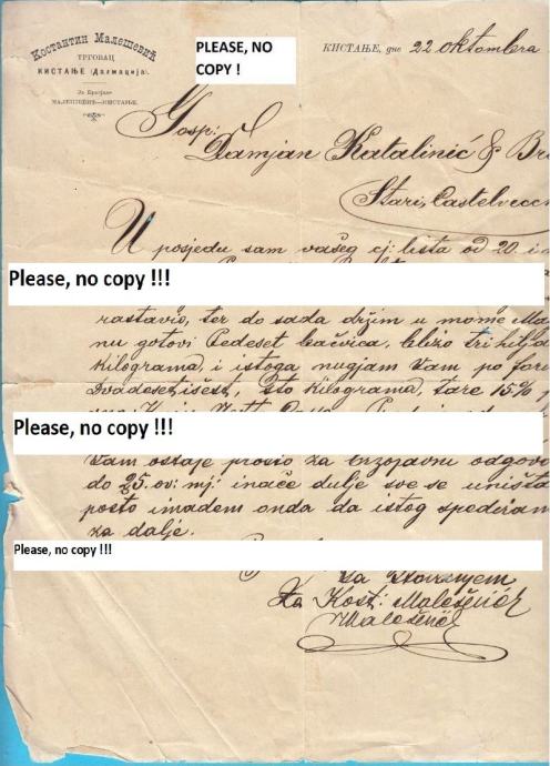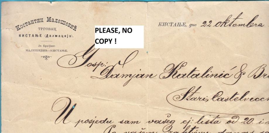 KISTANJE (Knin) KOSTANTIN MALEŠEVIĆ trgovac, stari memorandum iz 1897.