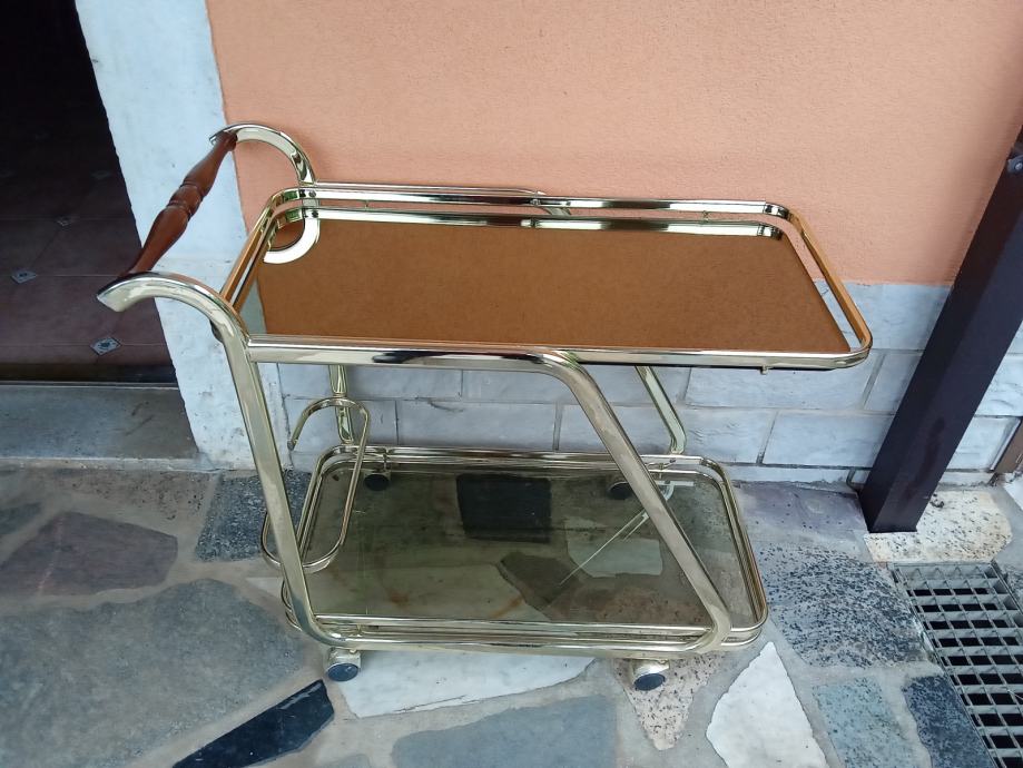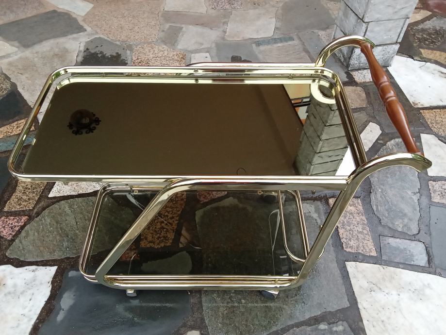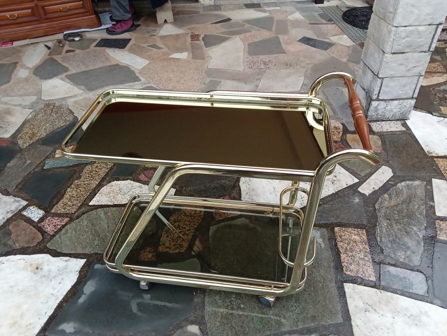 Mesingana kolica za posluzivanje hrane u odličnom stanju. Stakla na kolicima su ogledalo staklo a ne obično staklo.