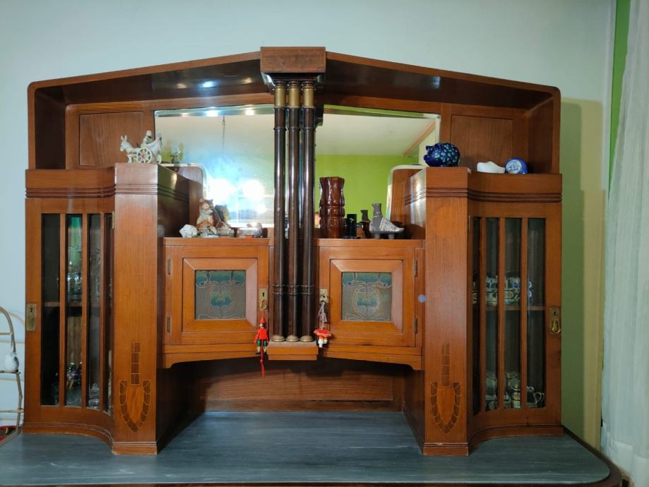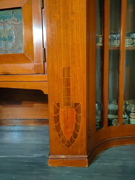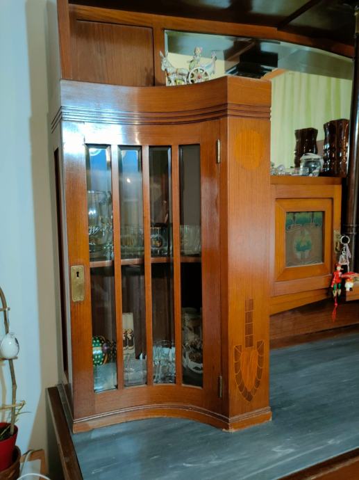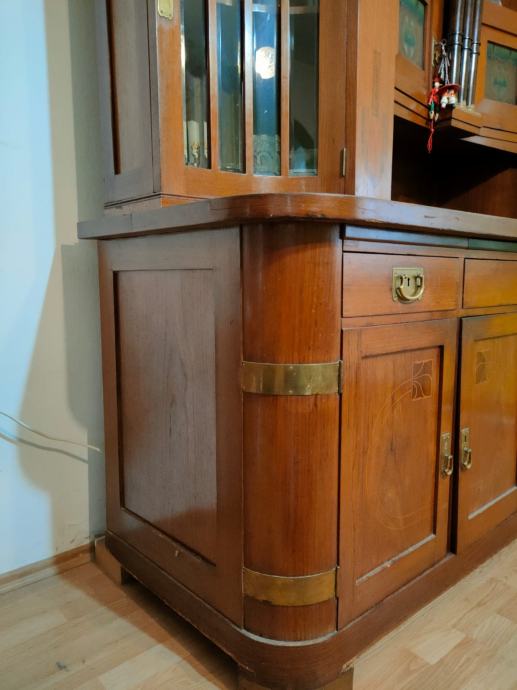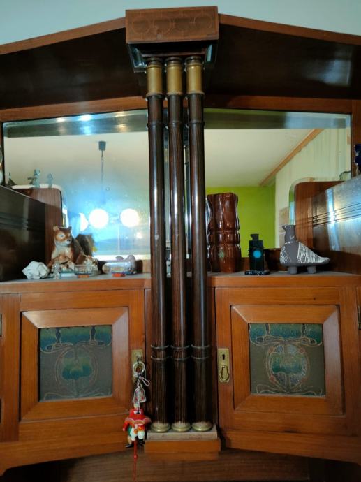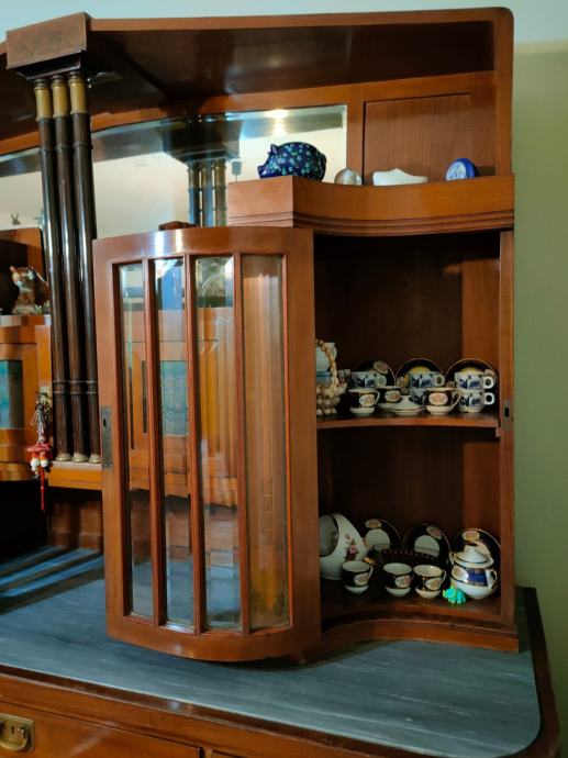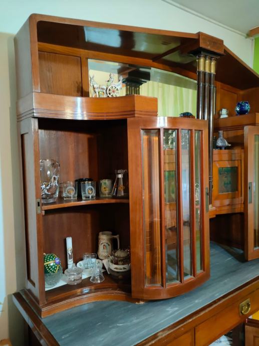 Komoda se sastoji od dva dijela. Donjeg dijela sa ladicama dimenzija D195cm*V89cm*Š68cm te gornjeg dijela sa vitrinom i policama te kristalnim ogledalom dimenzija D187cm*V129cm*Š42cm te ploča za pisanje dimenzija D80cmŠ45cm.