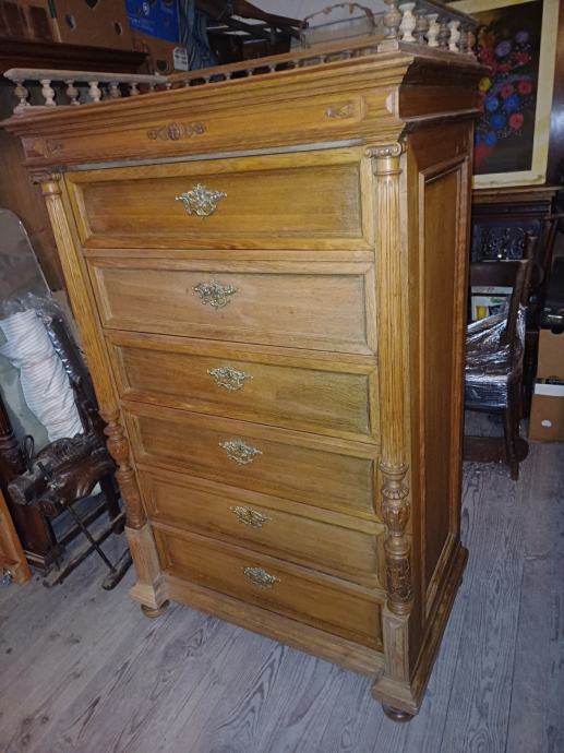 Prodajem restavrirano komodo na šest ladica od hrastovog drveta.