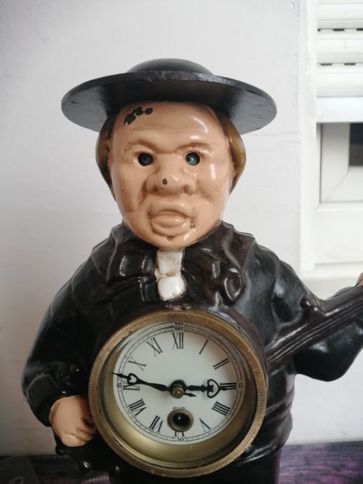 Materijal ljevano željezo, mehanički mehanizam,sat sa pomičnim očima,ispravan