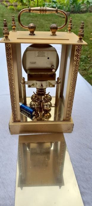 Vrlo lijepi komodni sat na baterije, ispravan i očuvan. Kućište od mesinga sa ukrasnim lajsanama bez oštećenja.