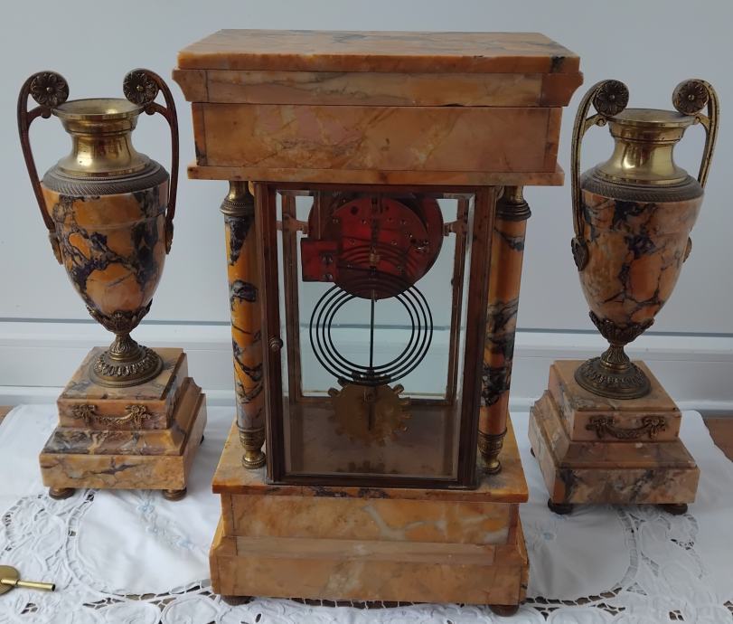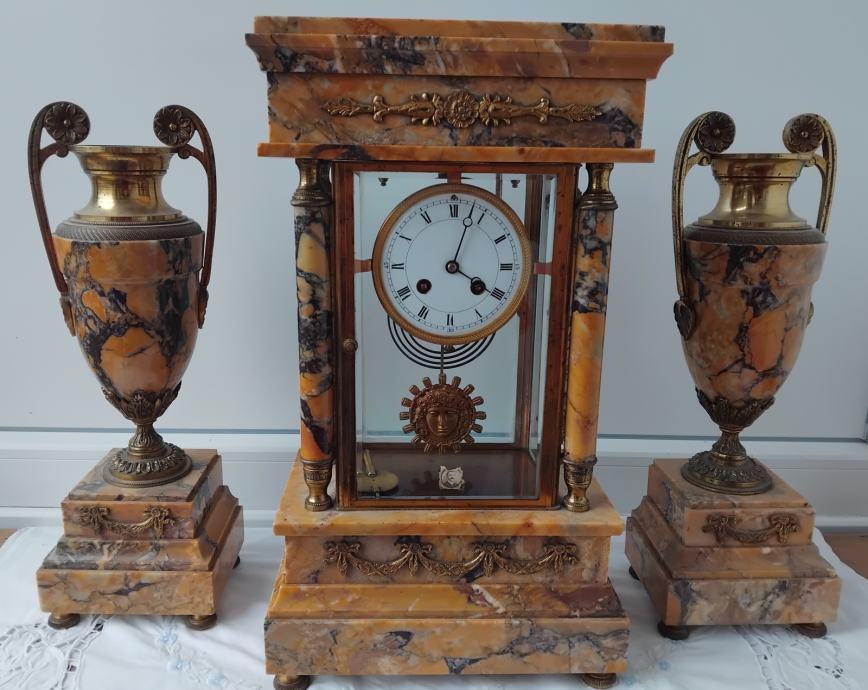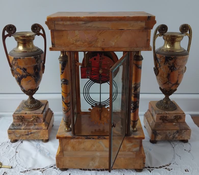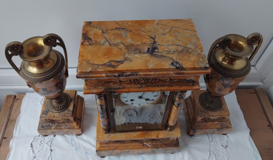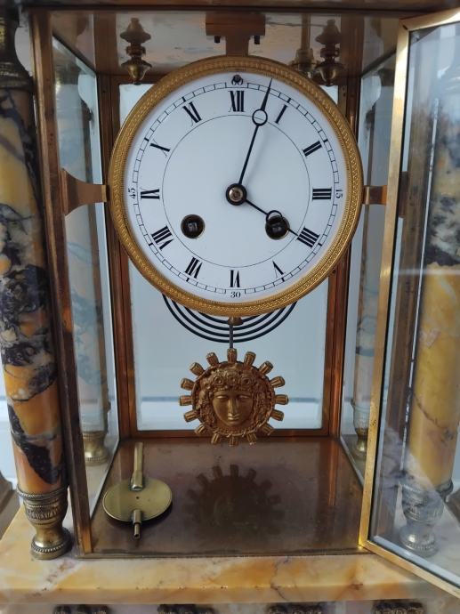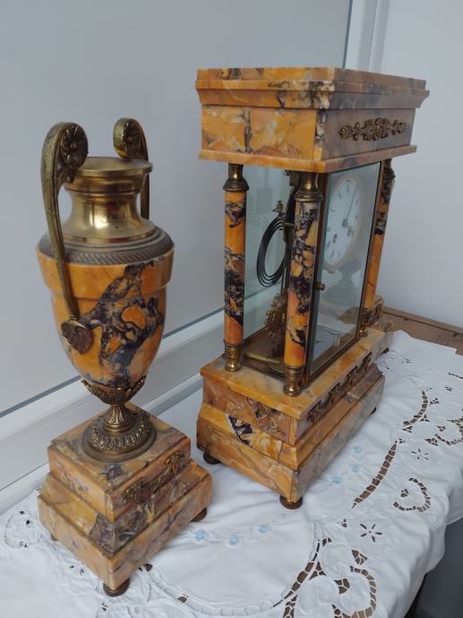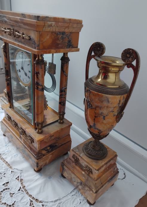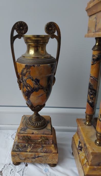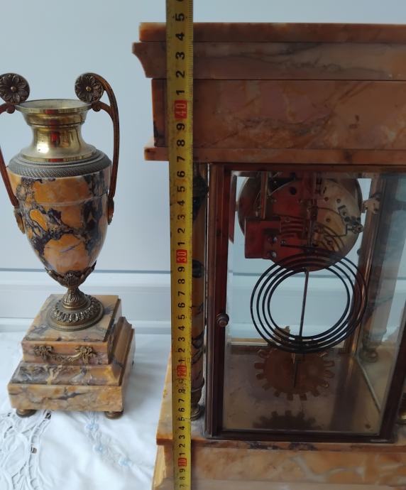 Mehanizam mehanički,mramor,fazetirano staklo,sa dvije vaze,ispravan