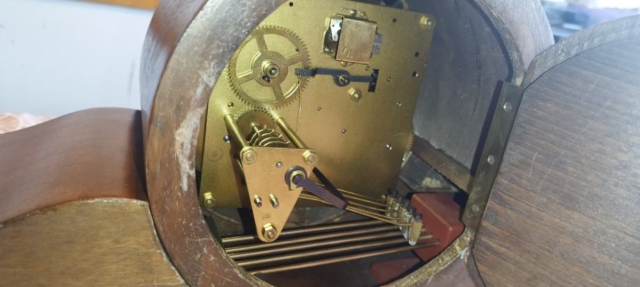 Komodni sat. Zvoni svakih 15 minuta melodiju sa WESTMINSTERSKE katedrale u Londonu (big ben). Zvonjava se može isključiti. Sat je potpuno ispravan očišćen i podmazan. Pogledajte video.