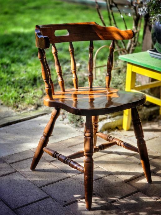 Prodajem set od 6 kvalitetnih drvenih stolaca (stolica) u izvrsnom stanju. Stolci su izrađeni od masivnog drva, vrlo stabilni i udobni, toliko udobni da gosti nikako da odu. Karakterizira ih predivna topla boja drva i klasični rustikalni dizajn (tokarene noge i prečke naslona) koji se savršeno uklapa u blagovaonice, vikendice ili prostore uređene u Country stilu.