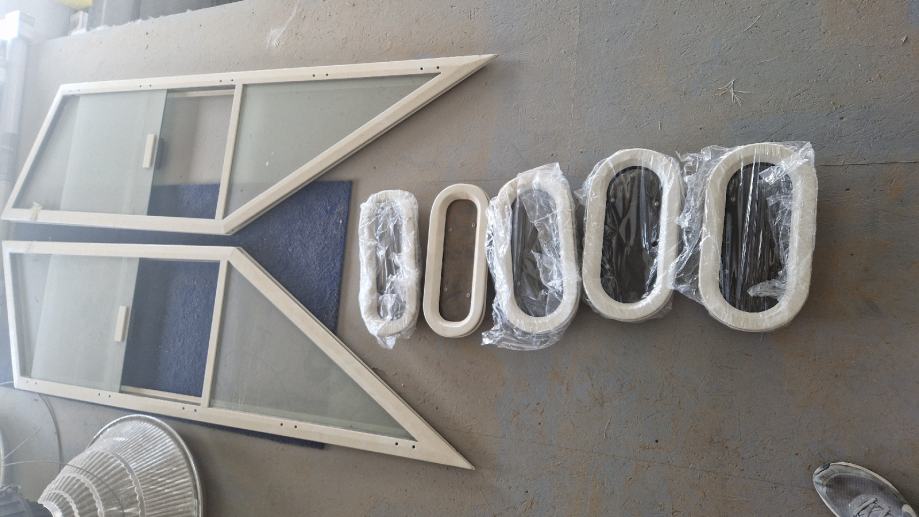 Komplet brodskih prozora ,dva prednja prozora,dva bocna i pet manjih.Set je prozora original je od broda croline patrol.