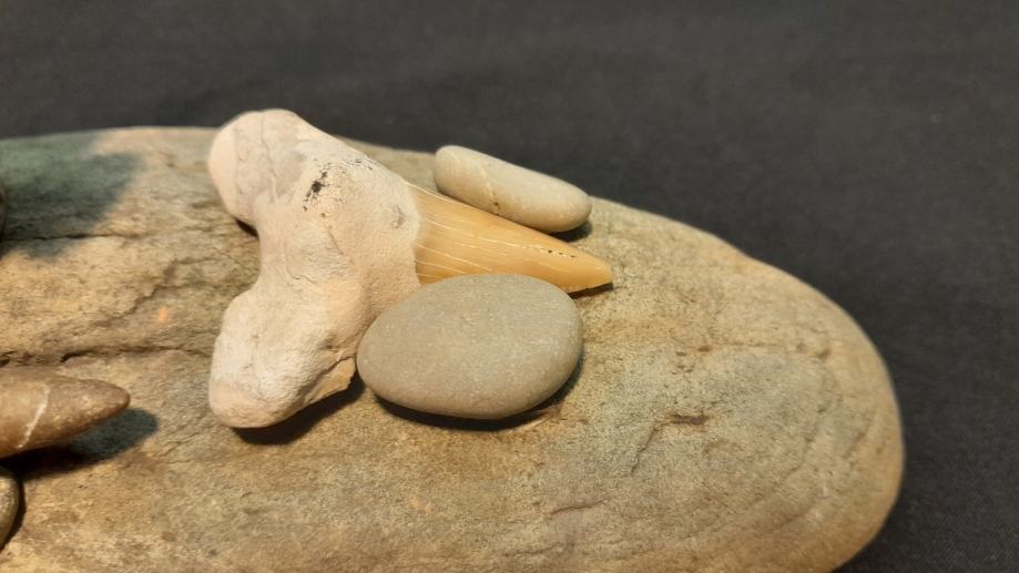 Komplet fosila-trilobit,belemnit i zubi prapovijesnog morskog psa na unikatnom stalku od kamena,,prodajem isključivo sve u kompletu za fiksno 200 eura,ne prodajem pojedinačno,može se pogledati na adresi,ne šaljem poštom,pogledajte ostale moje oglase.