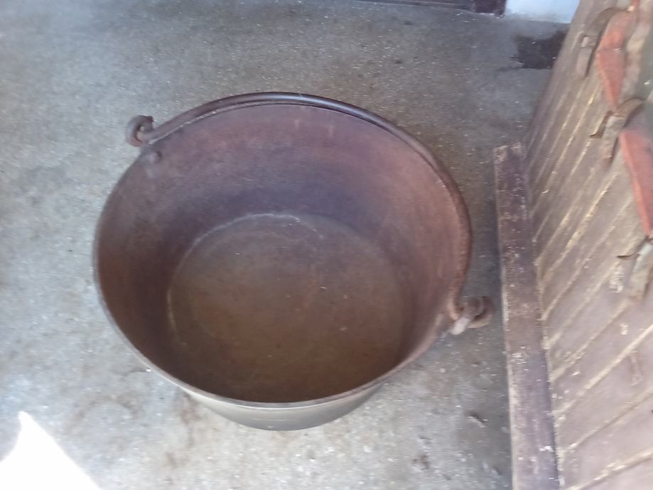 Teski metalni kotao veličine cca 50 litara. Promjer kotla je 50 cm. Kotao je tezak cca 30 kg.
